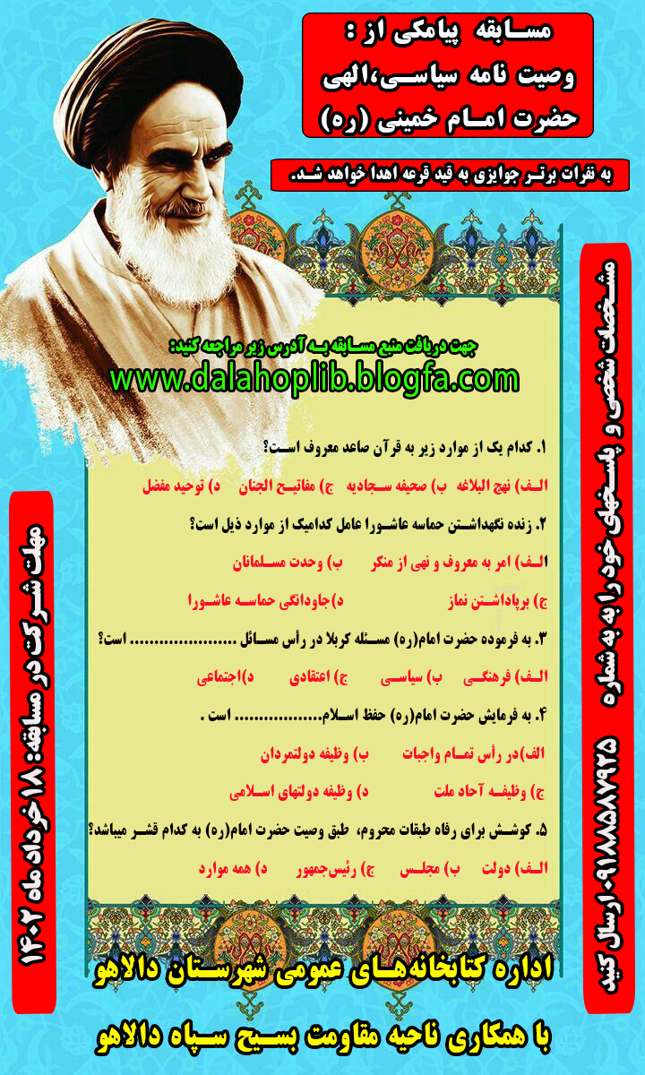 مسابقه پیامکی از وصیتنامه سیاسی_الهی حضرت امام خمینی(ره)